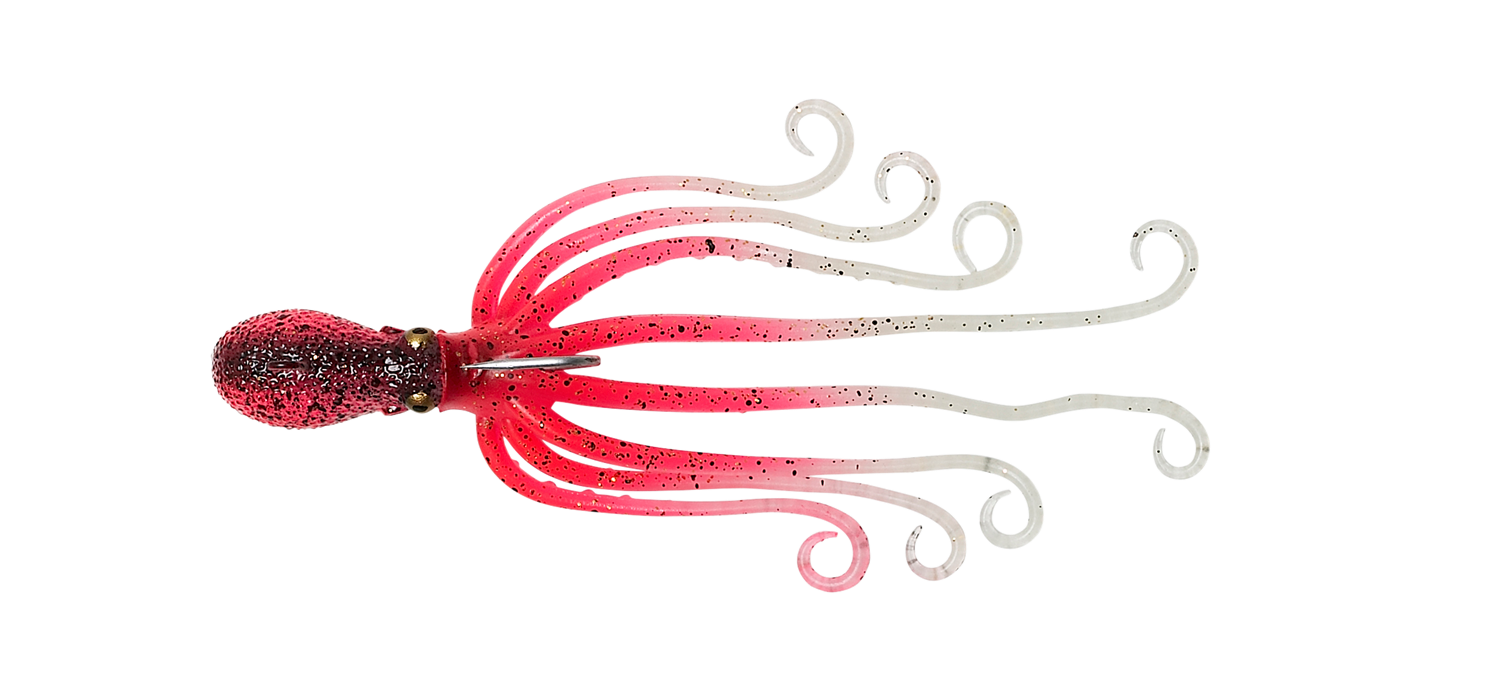 The 3D Octopus is based on a scan of a baby Octopus, the Body is lead alloy and the tentacles is made from super durable soft TPE. The lure has almost zero resistance in the water on the drop and will dart wide on slow jigging. On the pause the lure will hang in a realistic posture, and the tentacles will move at even the slightest current. For the bigger sizes, 120, 185 and 300g, the lure has Adaptive tie-point bridge to ease retrieve from depth. The Super Glow paint and skirt along with a built-in rattle chamber and bubble catch, the 3D Octopus hits every visual, auditory and sensory points that triggers feeding and aggression from predator fish. Built Tough with extra heavy-duty hardware, the 3D Octopus is designed to take on the most Savage predatory game fish on the ocean floor!